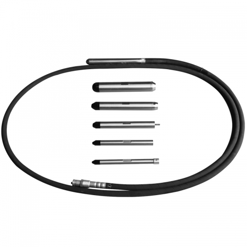 The eccentric poker is made by qualified rubber hose with vulcanization protection and high speed inner core,that provides both flexibility and resistance to wear.The outer casing rubber hose is with abrasive rubber,double layer of meshing wire,and high quality spring steel as the lining.The inner core is made by high carbon steel wire that is suitable for high speed working condition.